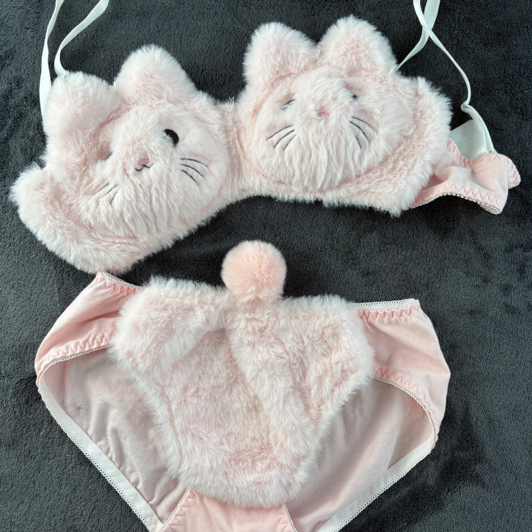 Dwuczęściowy zestaw bielizny SweetplushySet łączy w sobie miękkie sztuczne futerko, zabawny haft i idealne dopasowanie, tworząc idealne połączenie przytulności i uroku.